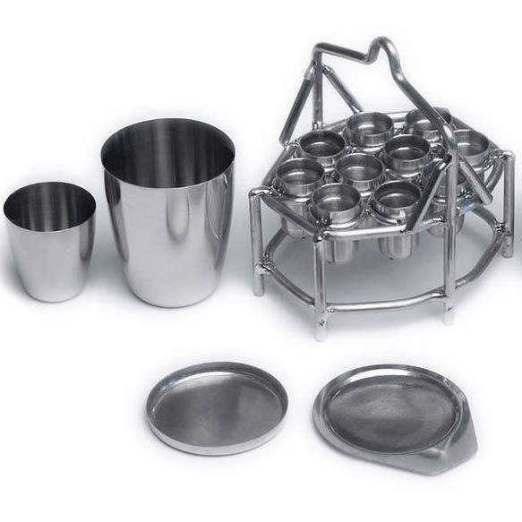 Тигли из драгоценных металлов и их сплавов и вспомогательное оборудование к ним применяют для варки и перемешивания стекла, для выработки световодов, для роста кристаллов, для различных целей, связанных с воздействием высоких температур в промышленном производстве и для научно-исследовательских целей.